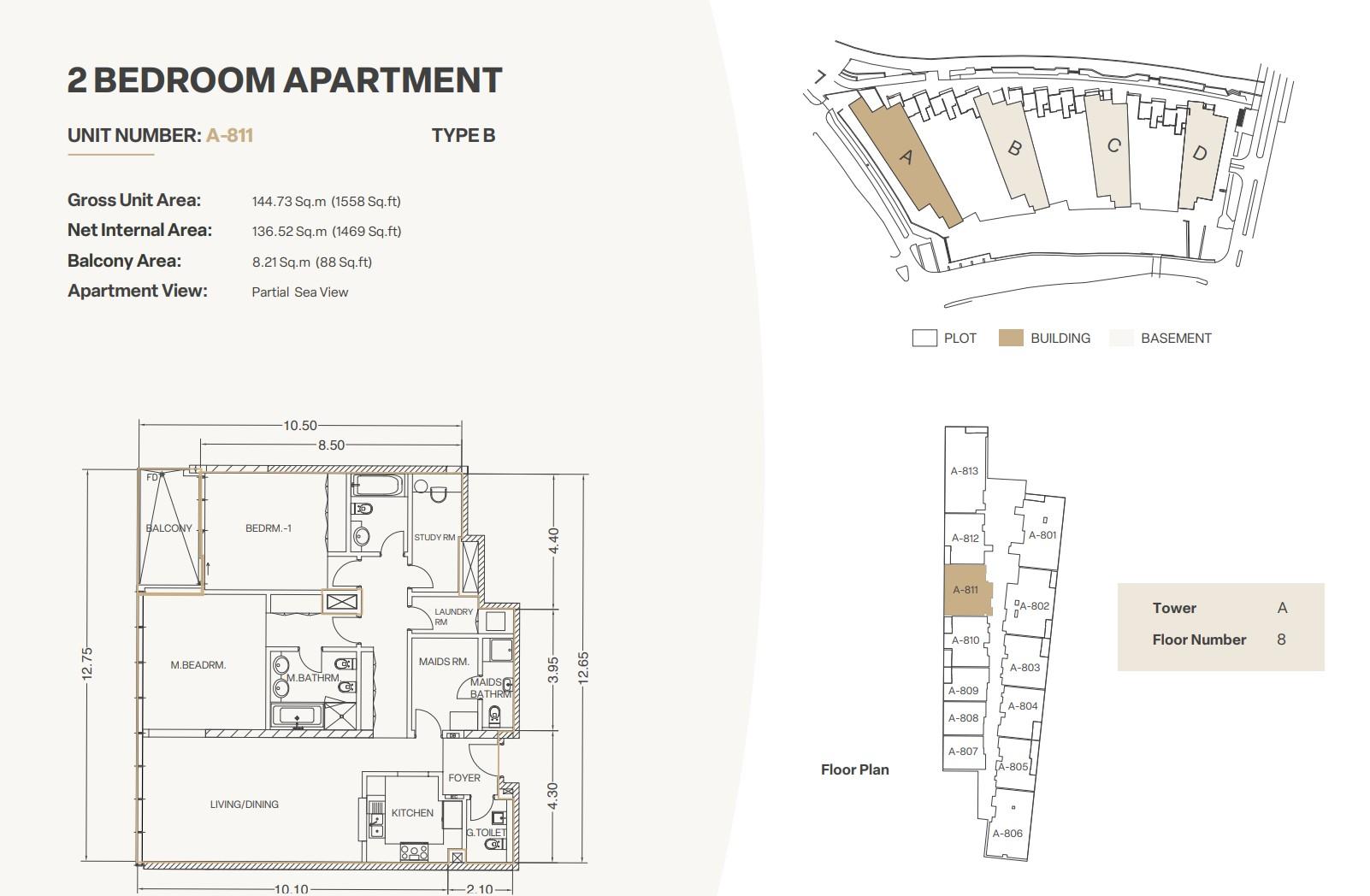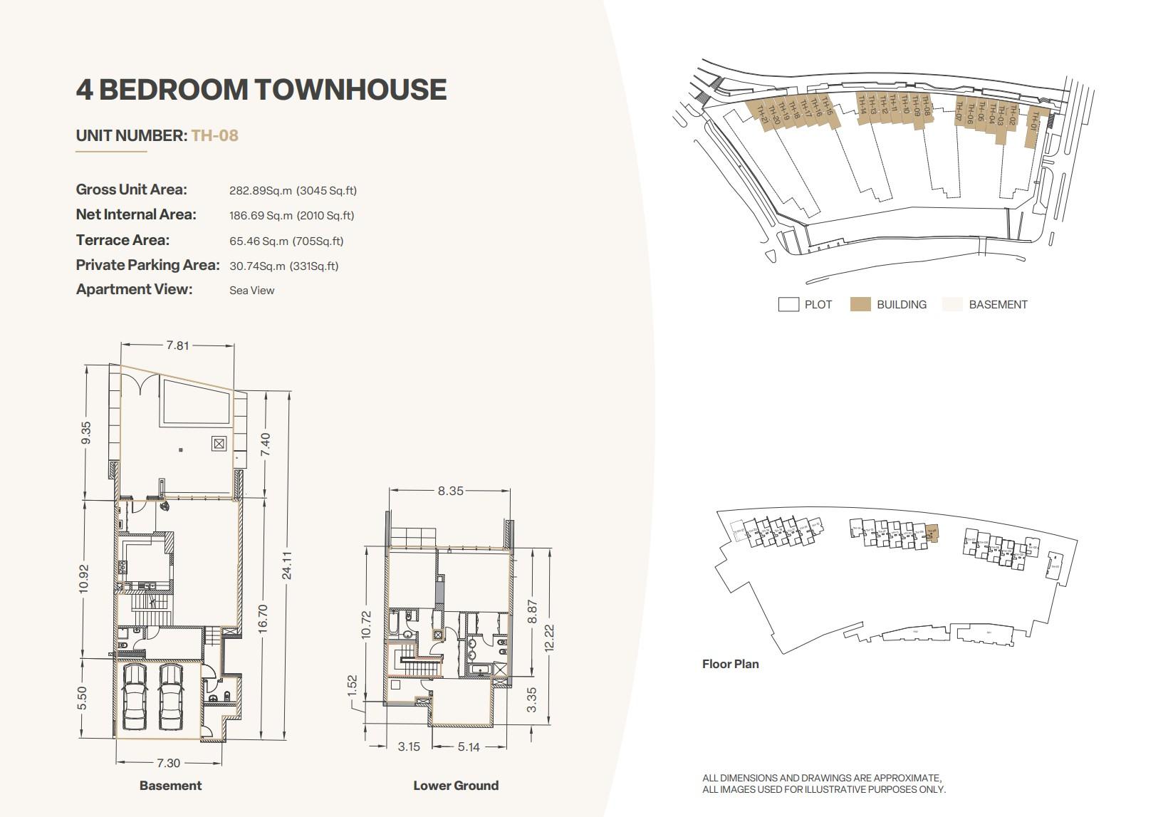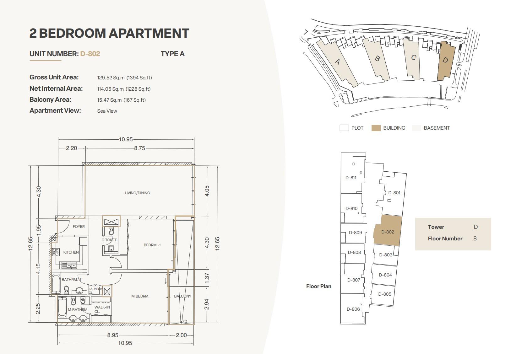 The community offers a range of luxury waterfront apartments and townhouses, including 1 to 4 bedroom layouts, each featuring modern interiors, spacious balconies, and panoramic sea or community views.